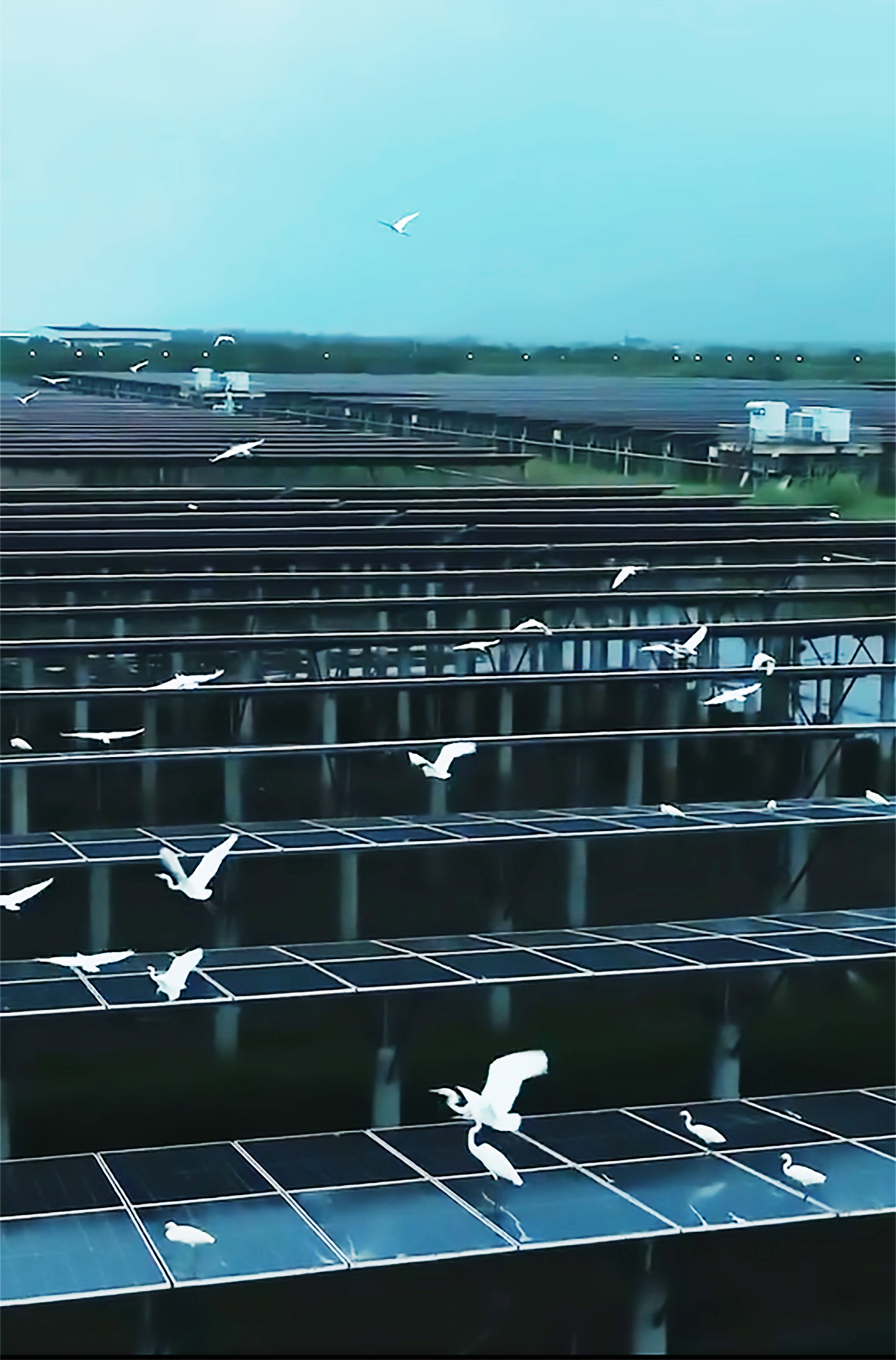 項目部獨創的“1元租金”模式正在改變傳統漁業生態。據項目人員介紹,安裝完成的矩陣光伏板距離魚塘4米左右多,完全滿足農戶養魚條件。項目業主通過協商從農戶手中把魚塘買過來,建好光伏電站后,再象征性地以每畝1元的價格把光伏板下的魚塘出租給原農戶繼續從事漁業,最大限度保護生態環境,配套建設的智能增氧系統和水質監測系統使魚蝦等水產品產量提升35%。在黨建引領下成立的“漁光合作社”,培訓237名漁民掌握光伏板清洗、組件檢測等新技能,將傳統捕撈者轉化為新能源產業工人,進一步融合各方關系,謀求多方共贏。